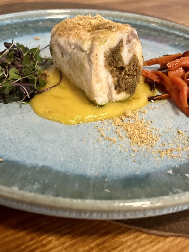Polenta caliente rellena de queso de cabra con costilla de ternera cocinada a fuego muy lento durante doce horas. ¡Un plato tradicional de las montañas y absolutamente sabroso!